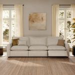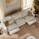 121" Modern Power Oversized Pillow-Back Reclining Couch Sofa, Electric Oversized Recliners 3 Seater, 145° Recline, Adjustable Headrest, USB Charging Port, Linen, Beige
