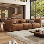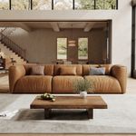 126 Inch Brown Genuine Leather Stain-resistant Wear-resistant Sofa, Mid Century Modern 3 Seater Couch