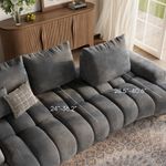 This sofa is very nice, with a layered seat that looks like a piano. It is very stylish and spacious. The legs are made of wood, which I like very much. I often watch movies on the sofa with my cats and dogs, and they also like to lie down and sleep on it. I like this sofa very much, it makes me feel very modern, simple and elegant.❤