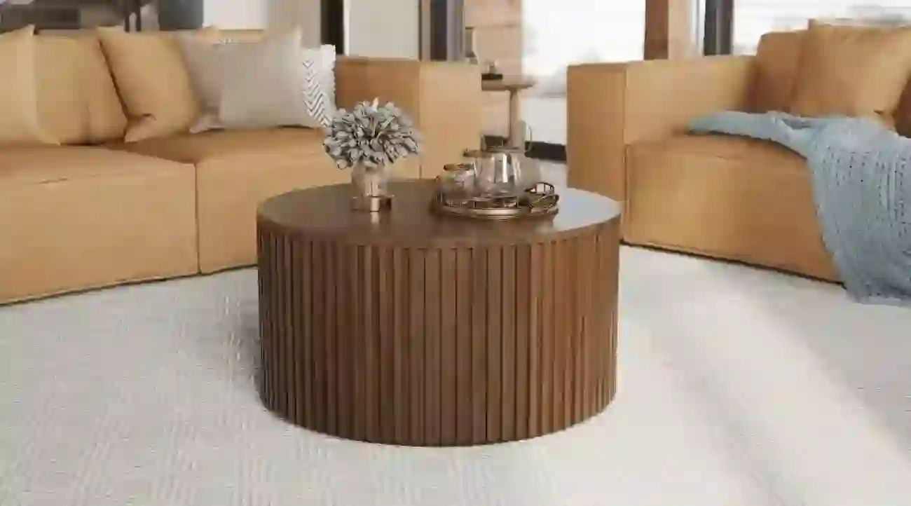 This coffee table features a rich walnut veneer that’s easy to clean and wear-resistant. Each groove is crafted from solid wood, and the rounded edges enhance safety with a sleek, modern look. Built with layered plywood, it ensures lasting durability and style.
