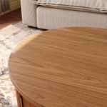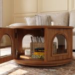 31'' Mid-Century Wooden Round Drum Coffee Table,With Large Storage, Retro Arch Elements, Fully Assembled, Walnut Color