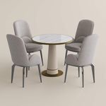 Modern Small Round Pedestal Bistro Table Set For 4, Glossy Sintered Stone Top, Stainless Steel Base