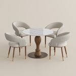 Mid Century White Glossy Sintered Stone Dining Room Set