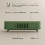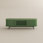 Sculpted from solid wood slats, the curved tambour doors flow like ripples—adding rhythm, texture, and retro charm to any space without compromising on functionality.