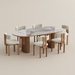 Just received this dining table set from Povison, and I'm blown away! The white quartz tabletop is super durable and a breeze to clean—no worries about spills or scratches. The wooden base gives it a rustic yet modern vibe that fits right into my space. The oval shape is perfect for my medium-sized dining area; it doesn't feel cramped and seats six comfortably with those cozy beige-cushioned chairs. Setting it up was straightforward, though the instructions could be clearer (had to watch a YouTube video, lol). But once assembled, it looked exactly like the product photos—elegant and inviting. I added a vase with some greens and a candle tray, and now it's the heart of my home for meals and gatherings. The price was totally reasonable for the quality; feels like it'll last for years. If you're on the fence, go for it—you won't regret it!