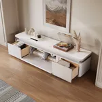 This TV stand features generous storage space with side drawers and a central drop-down door, perfect for keeping remote controls, media devices, and other living room essentials neatly organized. The intelligent layout helps you store and access your items with ease, keeping your space clutter-free.
