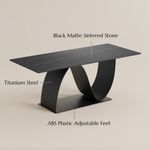 79" Modern Wave Dining Table for 6-8, Matte Black Sintered Stone Table, Black Carbon Steel Base, Abstract Dining Table