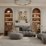 Arlo-1-2 seater Gray Velvet Cloud Curved Sofa Mid Century with Storage Ottoman Coffee Table