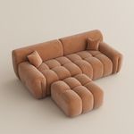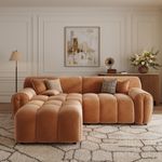101.2'' Tufted Couch Retro 2-3 Seater Mid Century Fluffy Sofa with Ottoman, Water-proof &Wrinkle-resistant, Art Deco Couch, Velvet, Camel, Living Room, Stain Resistant, Memory Foam, Cozy Round Sofa