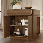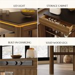 110" Modern LED Light Strip Island Dining Table With Storage, Black Matte Sintered Stone Top and Walnut Solid Wood Legs, Mid-Century Style Design