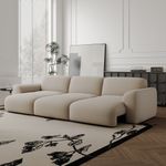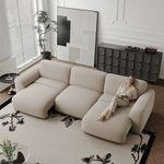 116" French Retro Cream Electric Sleeper Sofa Bed Retractable with Remote Control, Motorized Extendable Couch, Zero-Distance Wall Placement Pull Out Sofa Bed, 4 Modes, Chenille Fabric, High-Density Resilient Sponge, L/U Shaped Chaise for Living Room & Guest Room, Light Khaki
