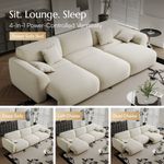 116" French Retro Cream Electric Sleeper Sofa Bed Retractable with Remote Control, Motorized Extendable Couch, Zero-Distance Wall Placement Pull Out Sofa Bed, 4 Modes, Chenille Fabric, High-Density Resilient Sponge, L/U Shaped Chaise for Living Room & Guest Room, Dark Gray