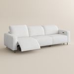 116" Luxury French Creamy Dual Power Reclining Sofa with Independent Headrest & Footrest,