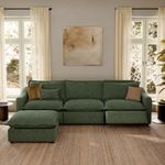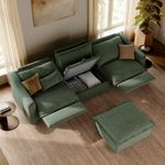 121" Modern Oversized Power Recliner Sofa with USB Charging and Storage Ottoman, 2 Recliners, 90°-145° Zero Gravity Recline, Storage, Solid Wood Construction, Wall-Hugging, Adjustable Headrest, Ideal for Modern Living Rooms, Waterproof Natural Fabric, Green