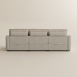 121" Modern Oversized Power Reclining Sofa with USB Charging with Storage Ottoman, 2 Recliners, 90°-145° Zero Gravity Recline, Storage, Solid Wood Construction, Wall-Hugging, Cloud-like Comfort, Linen, Beige