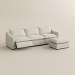 121'' Modern Power Oversized Pillow-Back Reclining Couch Sofa with Storage Ottoman, Electric Oversized Recliners 3 Seater, 145° Recline, Adjustable Headrest, USB Charging Port, Fabric, Beige