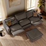121" Modern Power Oversized Pillow-Back Reclining Couch Sofa with Storage Ottoman, Electric Oversized Recliners 3 Seater, 145° Recline, Adjustable Headrest, USB Charging Port, Linen, Dark Gray