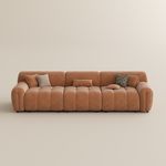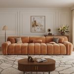 139.8'' Mid Century Tufted Couch Retro 3-4 Seater Fluffy Sofa, Water-proof &Wrinkle-resistant, Art Deco Couch, Velvet, Camel, Living Room, Stain Resistant, Memory Foam, Cozy Round Sofa