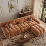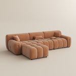 139.8'' Mid Century Tufted Couch Retro 3-4 Seater Fluffy Sofa with Ottoman, Water-proof &Wrinkle-resistant, Art Deco Couch, Velvet, Camel, Living Room, Stain Resistant, Memory Foam, Cozy Round Sofa
