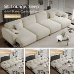 149.6" Luxury French Creamy Sleeper Power Sofa Bed Retractable with Remote Control, Waterproof Motorized Extendable Couch, Zero-Distance Wall Placement Pull Out Sofa Bed, Chenille Fabric, High-Density Resilient Sponge, L/U Shaped Chaise for Living Room, Dark Gray