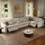 2 Recliners, 90°-145° Zero Gravity Recline, Storage, USB Charging Port, Adjustable Headrest, Oversized Pillow Back, Solid Wood Construction, Wall-Hugging, L-shaped Best Family Couches, Corner Piece Included, Linen, Beige