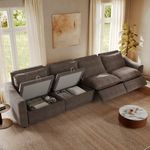 157" Modern Oversized Power Recliner Sofa with Storage, 2 Recliners, 90°-145° Zero Gravity Recline, USB Charging Port, Solid Wood Construction, Oversized Pillow Back, Waterproof Natural Fabric, Deep Mocha