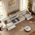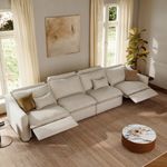 157" Modern Oversized Power Reclining Sofa with Storage, 2 Recliners, 90°-145° Zero Gravity Recline, USB Charging Port, Oversized Pillow Back, Wall-Hugging, Solid Wood Construction, Linen, Beige