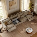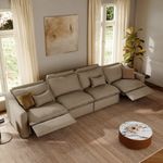 157" Modern Oversized Power Reclining Sofa with Storage, 3 Recliners, 90°-145° Zero Gravity Recline, USB Charging Port, Oversized Pillow Back, Wall-Hugging, Solid Wood Construction, Linen, Warm Sand