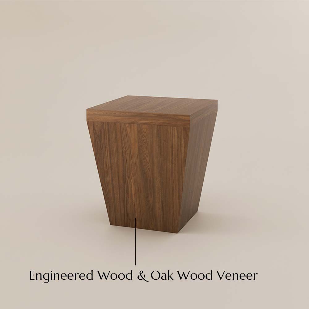 17.72" Walnut Veneer Side Table, Modern Square Drum Side Table, for Living Room