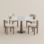 35.4" Vintage Round Glossy Sintered Stone Breakfast Table Set For 4
