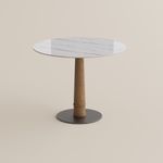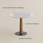 35.4" Vintage Round Glossy Sintered Stone Breakfast Table Set For 4, Small Space Dining Table With Walnut Ash Wood Base & Stainless Steel Legs, Mid-Century Vintage Style