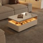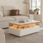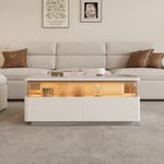 39" Modern White Coffee Table with LED Light, Center Table for Living Room, Luxury LED Display Coffee Table, Rectangle Coffee Table with Drawers, Living room Furniture, Fully Assembled