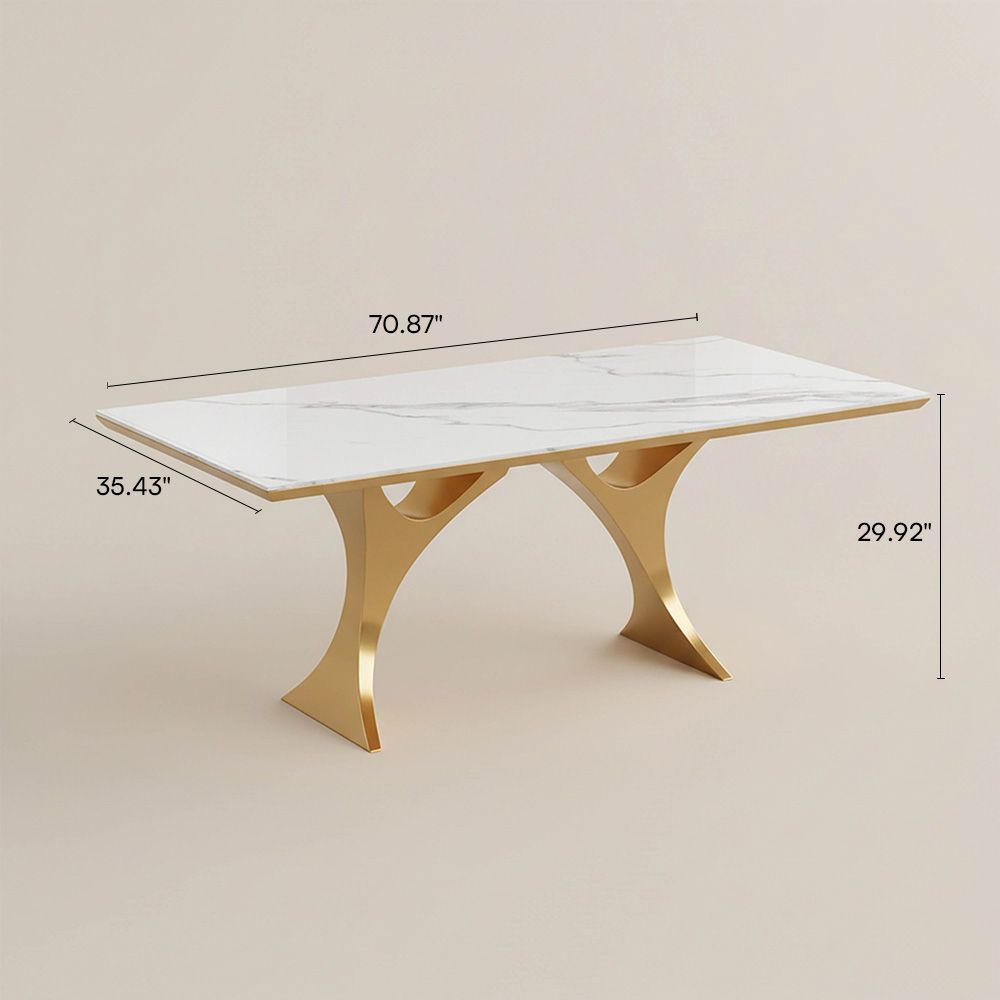 71" Modern Dining Table for 6 – Easy to Clean Glossy Sintered Stone Top with Gold Base, Space-Saving Double Pedestal Design for Dining Rooms