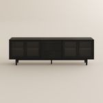 94" Mid-Century Modern TV Stand with Glass Doors, Black Credenza TV Console with Adjustable Shelves, 2 Doors & 3 Drawers, for Living Room or Bedroom, Perfect for 65 Inch TVs, Fully Assembled