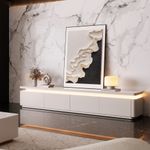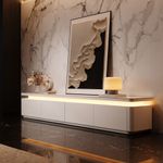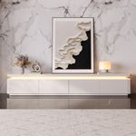95" Modern White Media Console with Adjustable LED Lights, Long TV Console with Glossy Sintered Stone Tabletop, Drop-Down Doors & Drawers, Open Storage for Living Room, Perfect for 85 Inch TVs, Fully Assembled