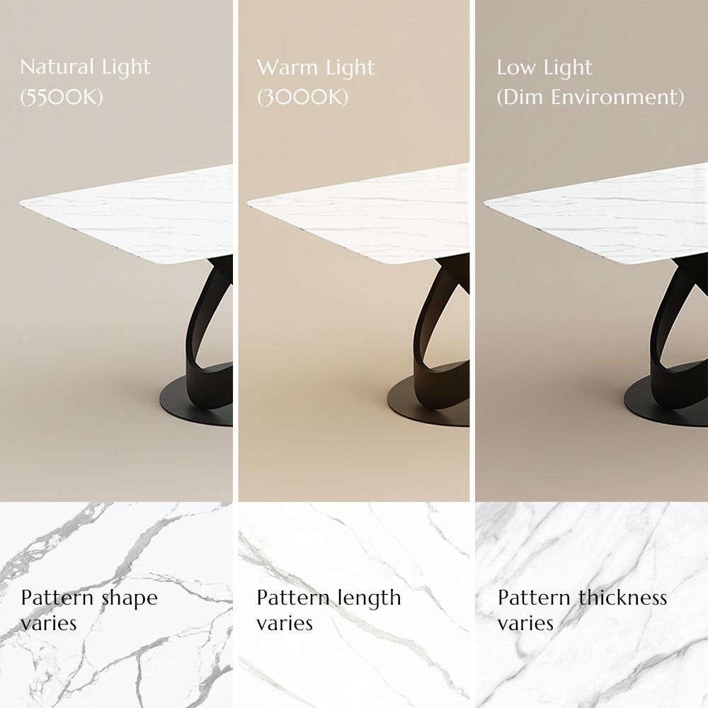 71"Modern White Dining Table for 6, Glossy Sintered Stone Tabletop, Solid Black Carbon Steel Base