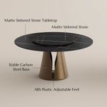 59"Modern Black Round Dining Table with Lazy Susan for 6, Matte Sintered Stone Table, Bronze Carbon Steel Base