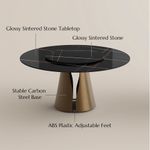 59 Inch Modern Round Dining Table with Lazy Susan for 6-8 People, Glossy Black Sintered Stone Table Top, Bronze Carbon Steel Base