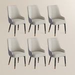 Modern Upholstered Dining Chairs Set of 6, Dining Chairs with Arms, Gray Leather Dining Chairs, Curved Back Dining Room Chairs, Gray