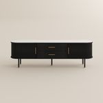 POVISON Exclusive Mid-Century Modern TV Stand, Minimalist Wood Media Console with Roller Shutter Door, Tall-Cast Metal Legs, Ash Wood Veneer, 70.87"