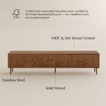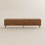 94.49"Mid-Century Modern TV Stand, Wood Media Console with Cabinets, Tall-Cast Legs