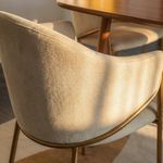 Mid Century Modern Beige & Bronze Cotton Linen Dining Chairs