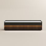 78.74" Mid-Century Glossy Sintered Stone Tabletop TV Stand, Modern Entertainment Center, Black Cabinet with Adjustable Light, Fully-Assembled, Perfect for 75-inch TVs