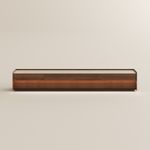 118.11" Mid-Century Matte Travertine Stone Tabletop TV Stand, Modern Entertainment Center, Walnut Color Cabinet with Adjustable Light, Perfect for 100-inch TVs