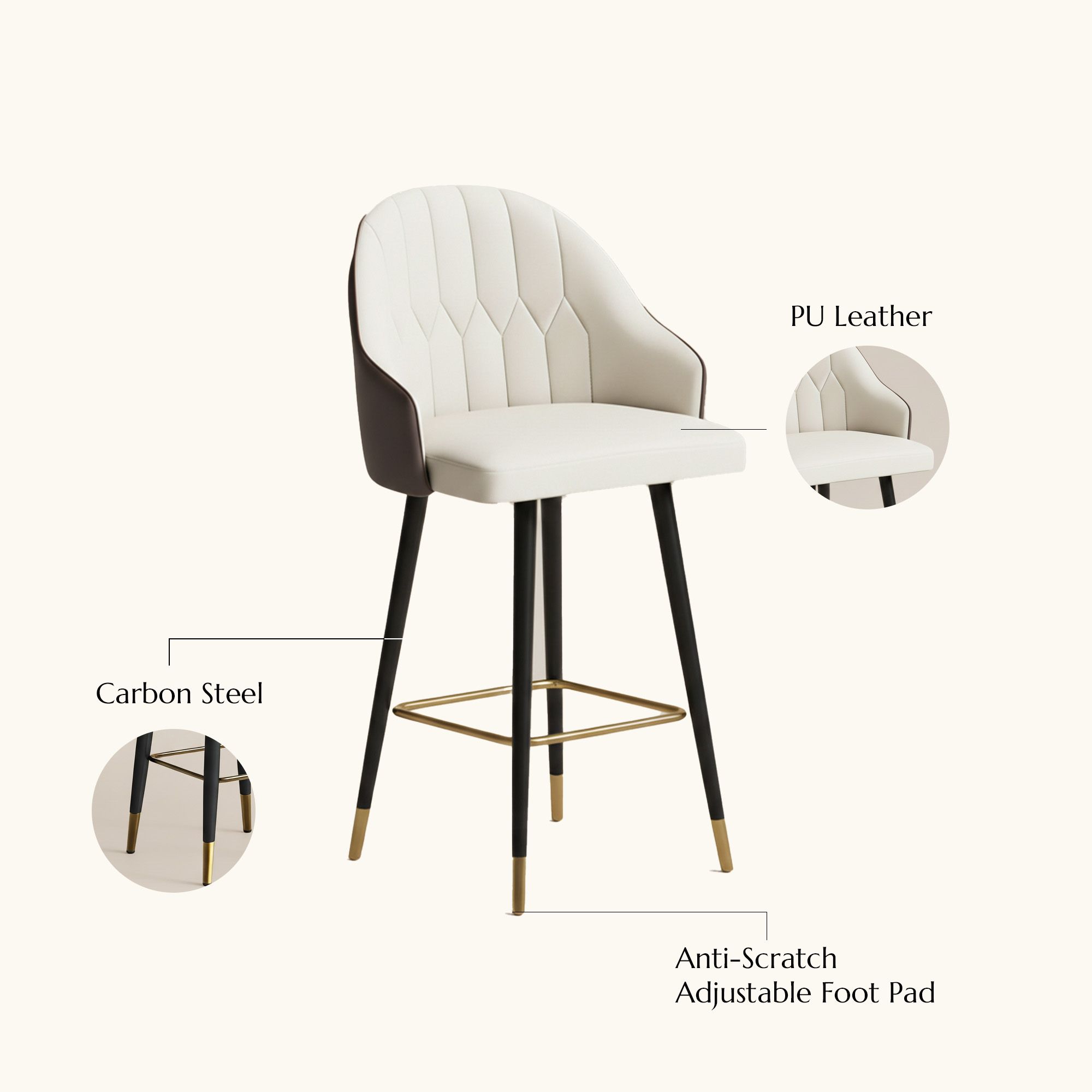 Modern Luxury Brown PU Leather Bar Stools