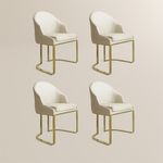 Modern Luxury Upholstered Dining Chairs Set of 4, Boucle Dining Chairs, Low Back Dining Chairs, Dining Chairs with Gold Legs, Beige