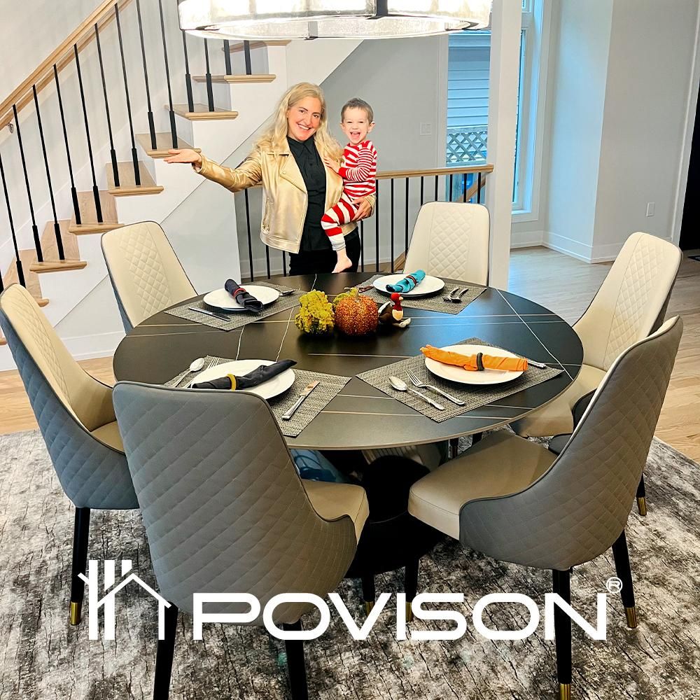 BEST SELLER Hobart Modern Minimalist Dining Table for 4/6, Round Sintered Stone Tabletop, Bronze Carbon Steel Leg