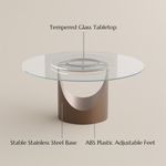 59" Modern Round Glass Dining Table for 6 with Glass Lazy Susan, Clear Glass Table for Kitchen, Bronze Metal Pedestal