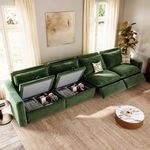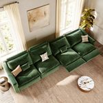 157" Modern Oversized Power Reclining Sofa with Pet-Friendly Velvet, 2 Recliners, 90°-145° Zero Gravity Recline, Storage, USB Charging Port, Adjustable Headrest, Oversized Pillow Back, Solid Wood Construction, Wall-Hugging, Waterproof & Scratch-Resistant Fabric, Green