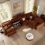 152" Modern Oversized Power Reclining L-shaped Sofa with Pet-Friendly Fabric, 2 Recliners, 90°-145° Zero Gravity Recline, Storage, USB Charging Port, Adjustable Headrest, Oversized Pillow Back, Wall-Hugging, Waterproof & Scratch-Resistant Velvet, L-shaped Best Family Couches, Brown